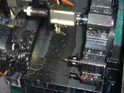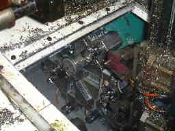 | 次にこの無垢のポイントをタレット型NC旋盤にセットします。これらも自動的に機械がポイントを挟み込み、穴あけやネジ切りを行ってくれます。 |