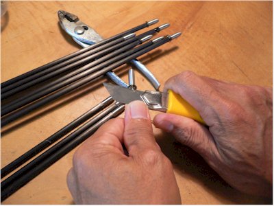 | 不要なホットメルトは外に押し出されます。硬化してからカッターナイフなどで、シャフトを傷つけないように落とせばいいでしょう。この時あまりキレイに取らなくても、明日の練習で数回畳を射てば、キレイになります。 |